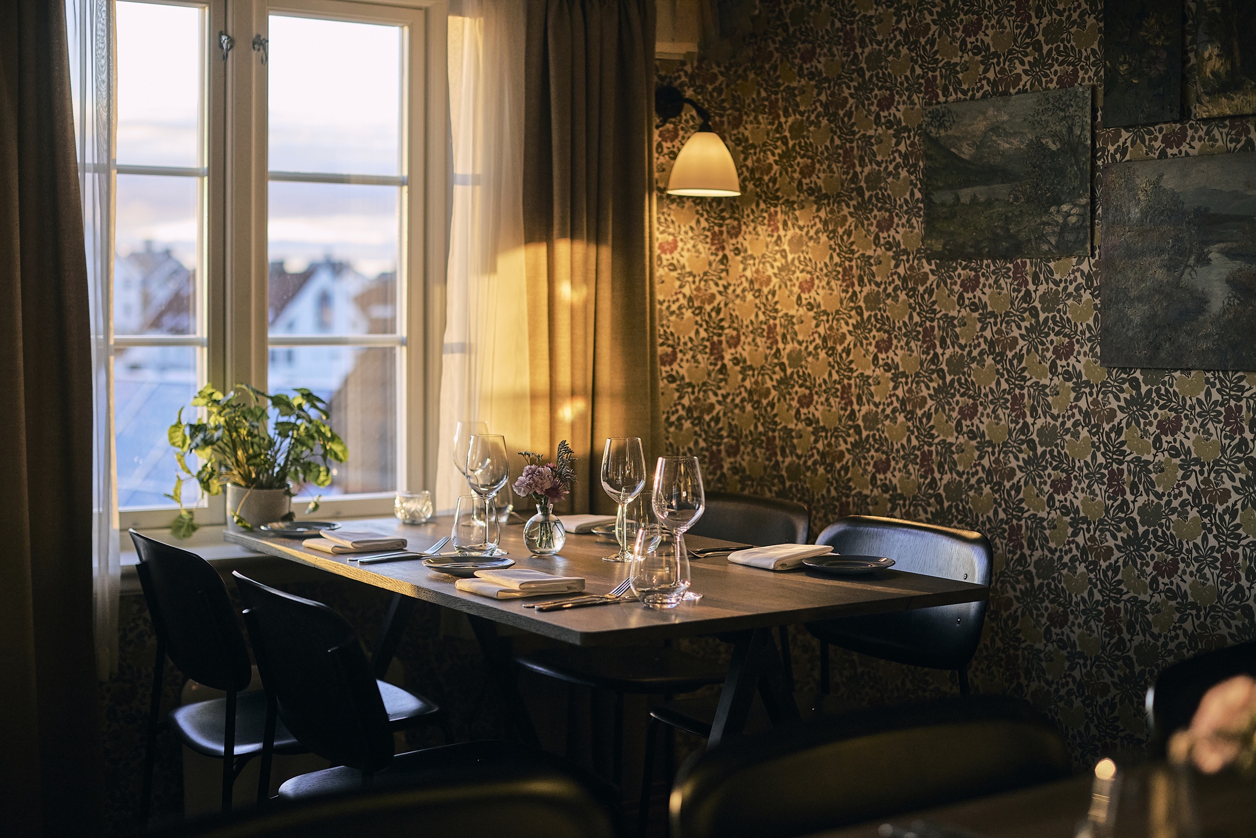 Nestled in the heart of Haugesund, overlooking the tranquil Smedasundet, Lothes Mat & Vinhus combines history, atmosphere, and exceptional cuisine. The building dates back to 1850 and has been lovingly restored, preserving its original character, classic details, and warm charm – and, according to the hosts, even a resident ghost adds a touch of intrigue.