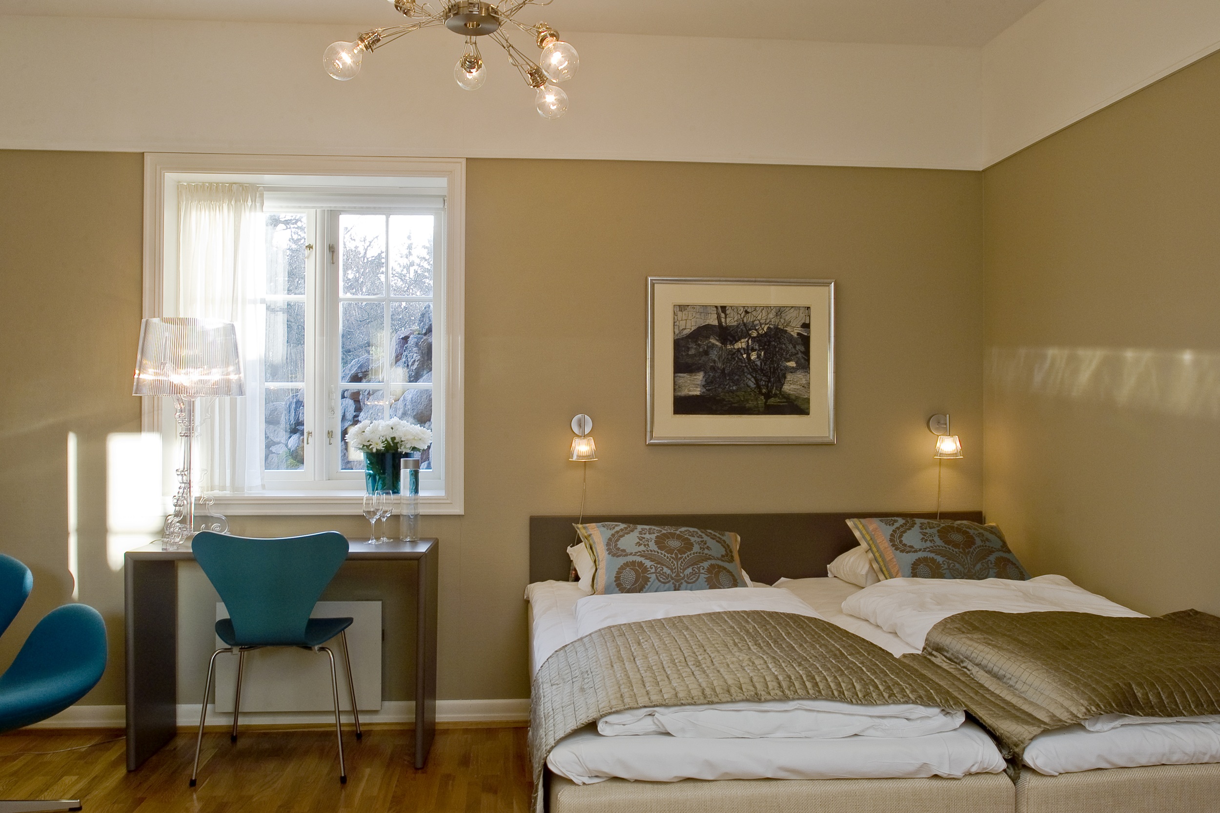 Right outside the door awaits the coastal path, beaches and views that shift with the light. Guests can rent bikes or kayaks, explore Jeløy’s galleries and studios, taste local cheeses and apple juices, or simply enjoy the quiet and the sunset from the terrace. The hotel’s restaurant, Himmel og Hav, draws inspiration from the seasons and the surrounding landscape, serving thoughtful dishes rooted in quality local produce.