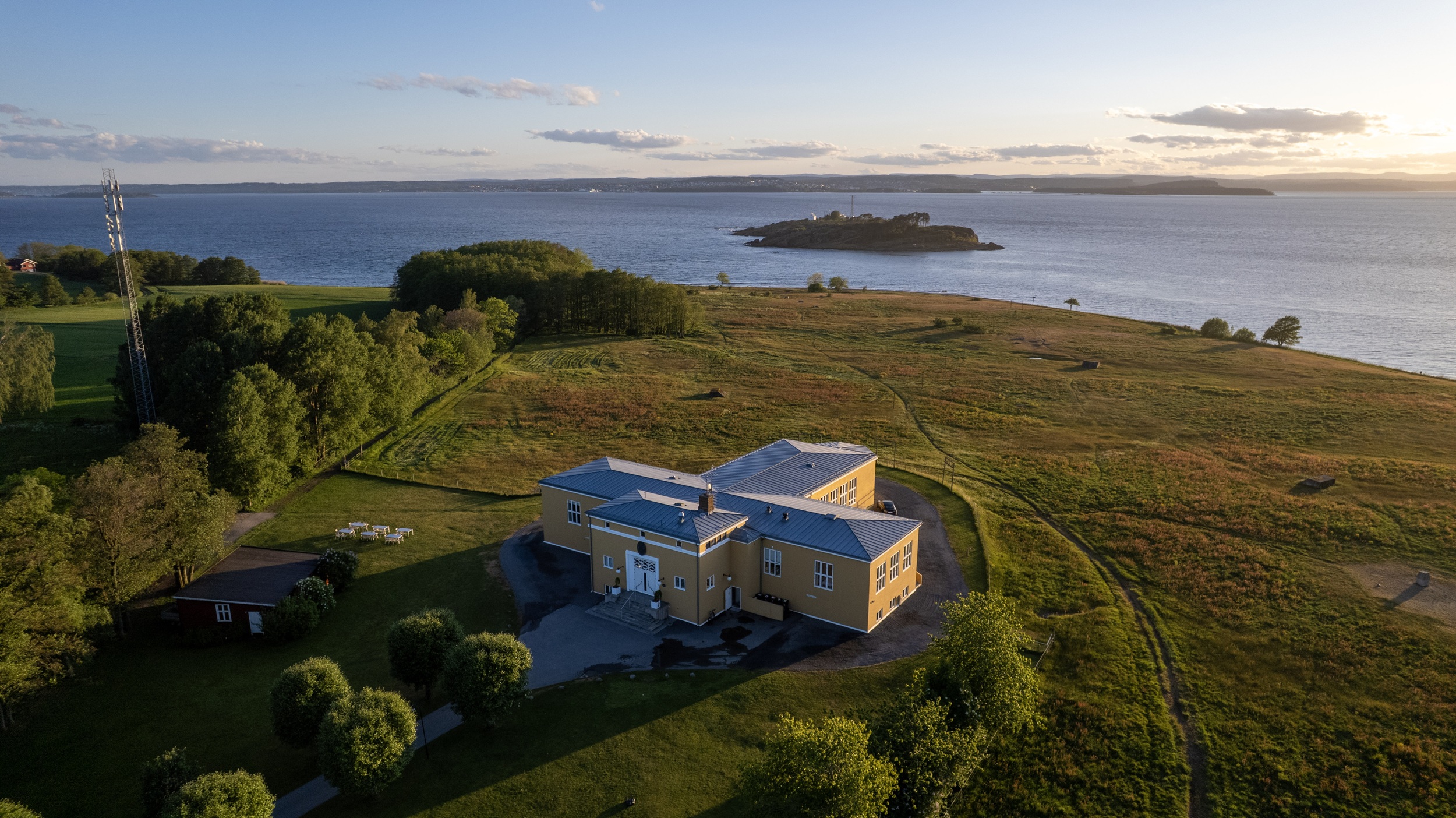 Hotel Jeløy Radio sits on the southern tip of Jeløy, surrounded by open skies and the Oslofjord just outside Moss. The striking functionalist building was originally constructed in the 1930s as a shortwave radio station, and its clean architectural lines remain intact. Today, the historic exterior is paired with modern comfort and a sense of calm that defines every stay.